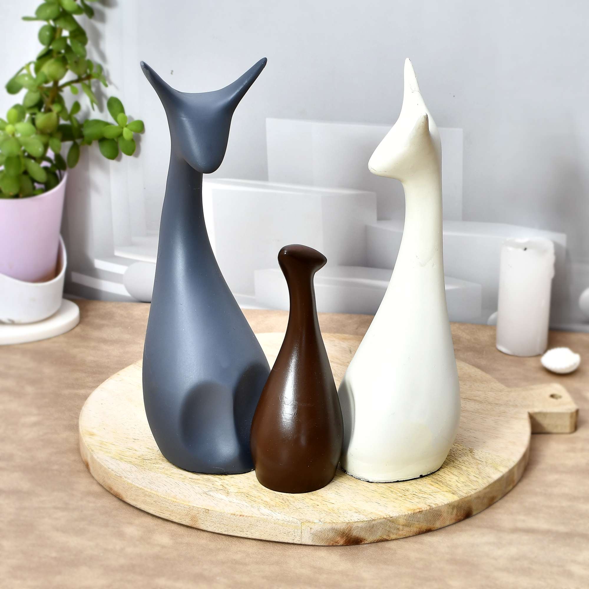 Bring an exquisite touch to your home with this intricate Lovely Giraffe Pair figurine set that has been crafted to add an artistic flair to your homes. Place it in your living room and let the serene design enhance the overall appeal with leaps and bounds. Note : The Giraffe Pair showpiece can be matched with other decorative objects from our collection to have an abstract decor setup.