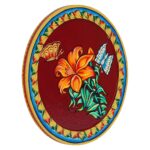 Decorative Red Plate with Butterfly and Flower Pichwai Painting